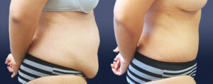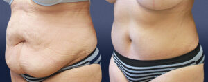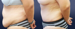 She is 5’4” and weighs 150 pounds and underwent a full abdominoplasty with rectus plication and flank and upper abdominal liposuction.