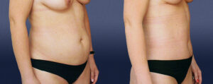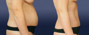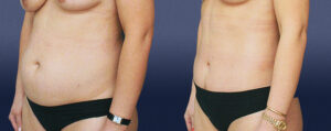 She is 150 pounds and underwent a breast lift as a vertical mastopexy, and at the same time had a tummy tuck as part of a full mommy makeover.
