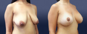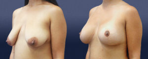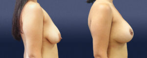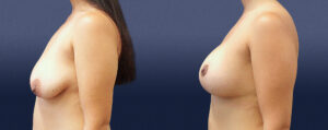 This lovely 36-year-old female had some breast changes after pregnancy that she was noticing. She felt her breasts were deflated and the skin was “saggy”. She also noticed her areolas were large. Her goals were for a lifted, perky breast and a smaller NAC size.
