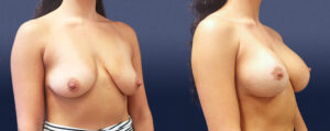 This lovely 27-year-old female who was seen for discussion on breast enhancement surgery. She has noticed her breasts had become “deflated” since she lost 50 pounds over the past 3 years. She was wishing to increase the volume of her breasts and help improve her asymmetry.