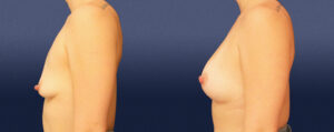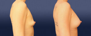 She is 5’6” foot tall and weighs 140 pounds and underwent bilateral breast augmentation with a balancing left vertical mastopexy. Differential implants were used and were Mentor, Moderate Classic, 300 cc on the right and 275 cc on the left.