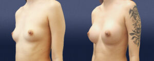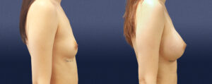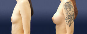 This lovely 25-year-old female was hoping for a natural enhancement for her breasts. She wished to remain proportional and presented as a 32-A cup. Her goal was to be a full C, or small D-cup. She is 5’8” tall and underwent a dual plane breast augmentation using smooth round silicone implants. The implants are Natrelle Inspira, smooth round, SSF 295 cc in size.