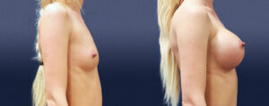 This lovely 27-year-old female had been considering breast augmentation surgery for over 5 years. On a spectrum she wished for a more enhanced look, while still maintaining a natural feel with her breasts. She is a 32-A cup with goals to be around a D-cup.