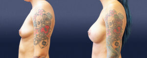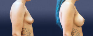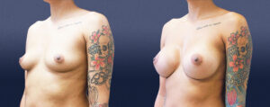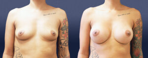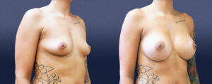 She is 5’9” and weighs 147 pounds. She underwent a dual plane, breast augmentation through an IMF incision in the submuscular plane using smooth round implants.