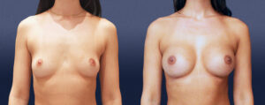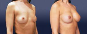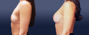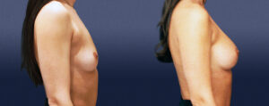 This lovely 30-year-old female presented after loosing volume in her breasts over time. She is very active and wished to enhance her volume in a natural, proportional way. Her goal was to be a C-cup. She is 168 cm tall and underwent a dual plane breast augmentation using smooth round silicone implants. The implants are Mentor Moderate plus, smooth round, and 225 cc in size.