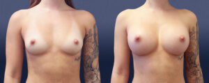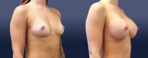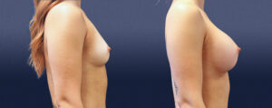 This lovely 22 year-old female wished to enhance her breasts. She wanted to increase her fullness in a proportional way that balanced her figure. She is 5’6” tall and underwent a dual plane breast augmentation using smooth round silicone implants. The implants are Natrelle Inspira, smooth round, SSF 365 cc in size.