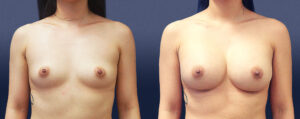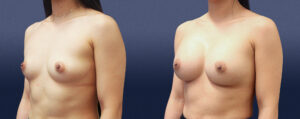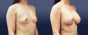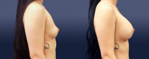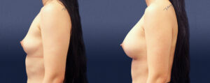 This lovely 23 year-old female wished to increase the volume of her breasts and “not be too big”. Her goals were for a more natural look with “not too much side boob”. She is 5’4” tall and underwent a dual plane breast augmentation using smooth round silicone implants. The implants are Natrelle Inspira, smooth round, SRF 415 cc in size.