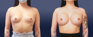 She is 5’6” tall and weighs 135 pounds. She underwent a duel plane breast augmentation through an IMF incision using smooth, round silicone gel implants. The implant are Natrelle, Inspira SCF, 520 cc in size.