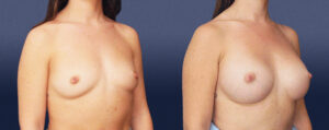 She is 5’ and weighs 107 pounds. She underwent a breast augmentation through an IMF incision in the subfascial plane using smooth round implants.