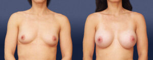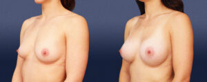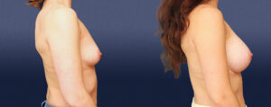 She is 5’3” tall and weighs 125 pounds. She underwent a duel plane breast augmentation through an IMF incision using smooth, round silicone gel implants. The implant are Natrelle, Inspira SSM 295 cc on the right, and SSM 275 cc on the left to account for some asymmetry.