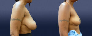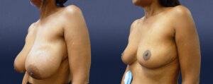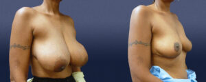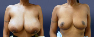 This lovely 53-year-old female presented as a 36-DD bra cup size, and was having significant neck pain and functional limitations from her large breasts. She also found it difficult to run due to her breasts and had significant bra strap grooving. Her goal was to be a great deal smaller and approximately a B-cup bra size.