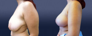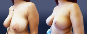 She underwent a vertical breast reduction with a superior-medial pedicle, and a nipple-areola reduction.