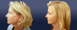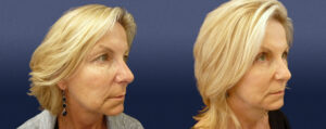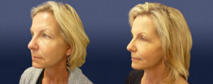 This lovely 56-year-old female was seen in consultation for periorbital and facial rejuvenation. Her biggest concern was feeling like her eyes were droopy and tired. She also noticed excess skin in the jowl area and lines around her mouth. She wished to rejuvenate her eyes and lower face to improve her contour and help restore a more youthful appearance.