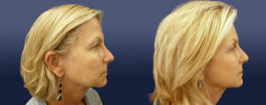 She underwent a lower facelift with SMAS plication, as well as, upper eyelid blepharoplasty surgery.