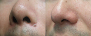 This very pleasant 35-year-old man has a mole at his nose cheek junction that was bothersome. It was removed under local anaesthetic.