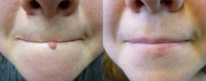 This very pleasant 35-year-old female had a long-standing mole on her lower lip. This slowly increased in size over the course of 15 years and was bothersome due to its appearance and location. It was removed under local anaesthetic.