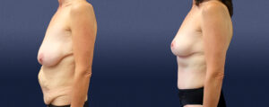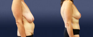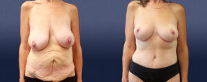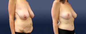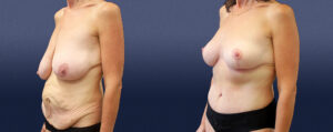 The patient underwent a breast lift as a vertical mastopexy, and at the same time had a tummy tuck as part of a full mommy makeover.