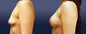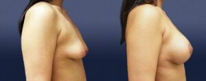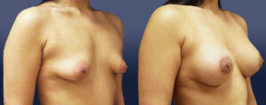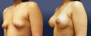 This very pleasant 21-year-old female was unhappy with the shape of her breasts and lack of upper pole fullness. She also did not like the size of her areola in relation to her breast size. When she presented she was a 34-B cup, however, bra’s did not fit her well. She wished to be a full-C or D-cup with a more balanced breast appearance.